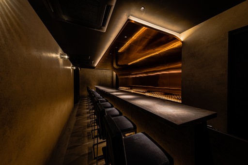 パーフェクトな体験をいただくために、多様な光の効果を最大限活かす大きな弧を描くブロンズが施されたヴィンテージとモダンが融合したカウンターに、ゆったりとした個室席も完備しています。