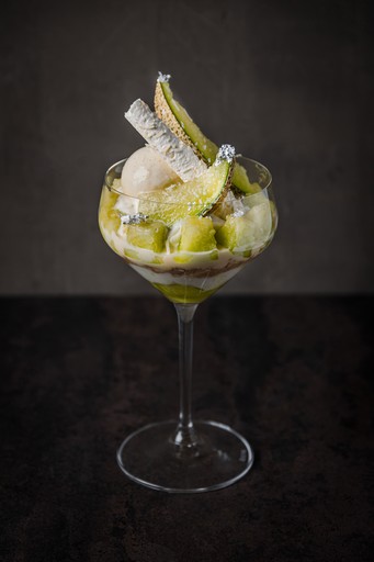 Parfait au saké japonais et crème d’anjou au melon